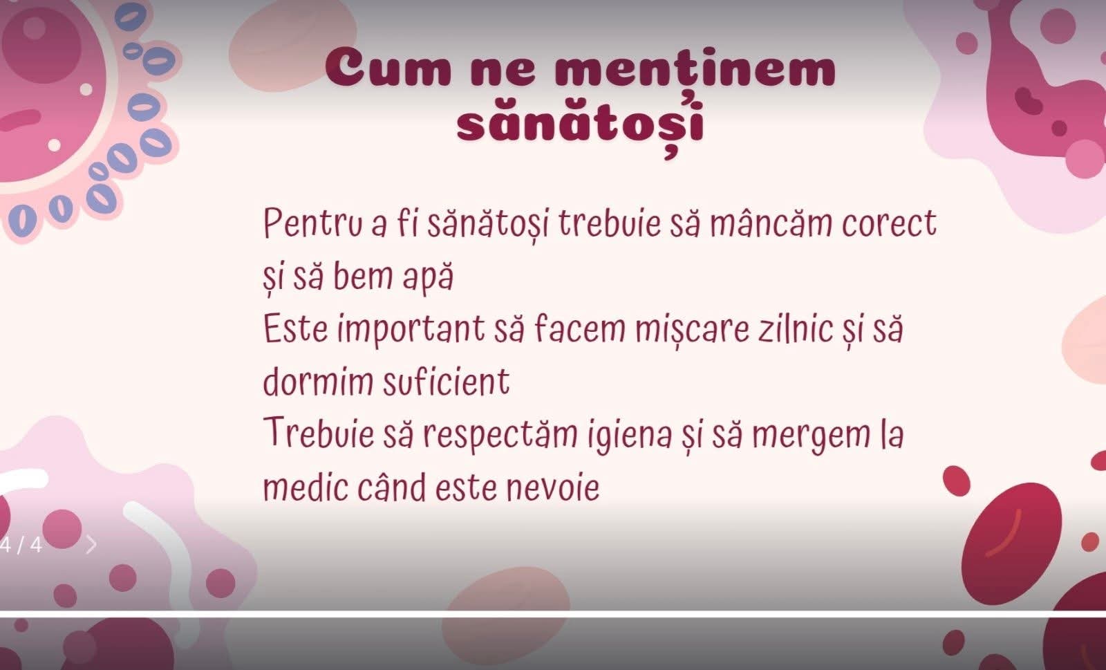 Elevii au fost îndemnați să acorde o atenție sporită stilului de viață, prin alimentația sănătoasă și echilibrată, prin controale medicale regulate, activitate fizică zilnică, evitarea obiceiurilor nocive și grijă față de sănătatea mintală.
